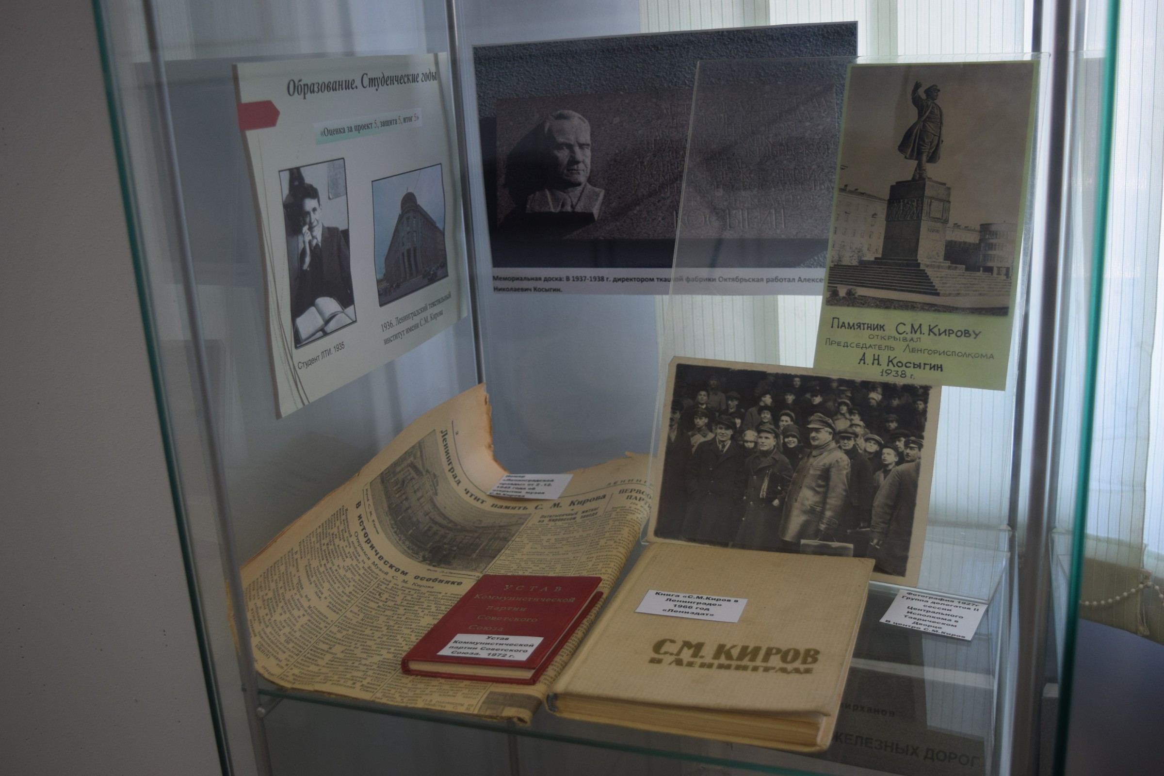 Трудовая слава ЛенинградаВ разделе "Трудовая слава Ленинграда" находятся предметы, связанные с жизнью А.Н.Косыгина в Ленинграде. Детство, учеба в технологическом институте, работа в должности председателя Ленгорисполкома в 1938-1939 годах. Отдельное место занимает период Блокады. А. Н. Косыгин: Строительство ледовой трассы (презентация)
